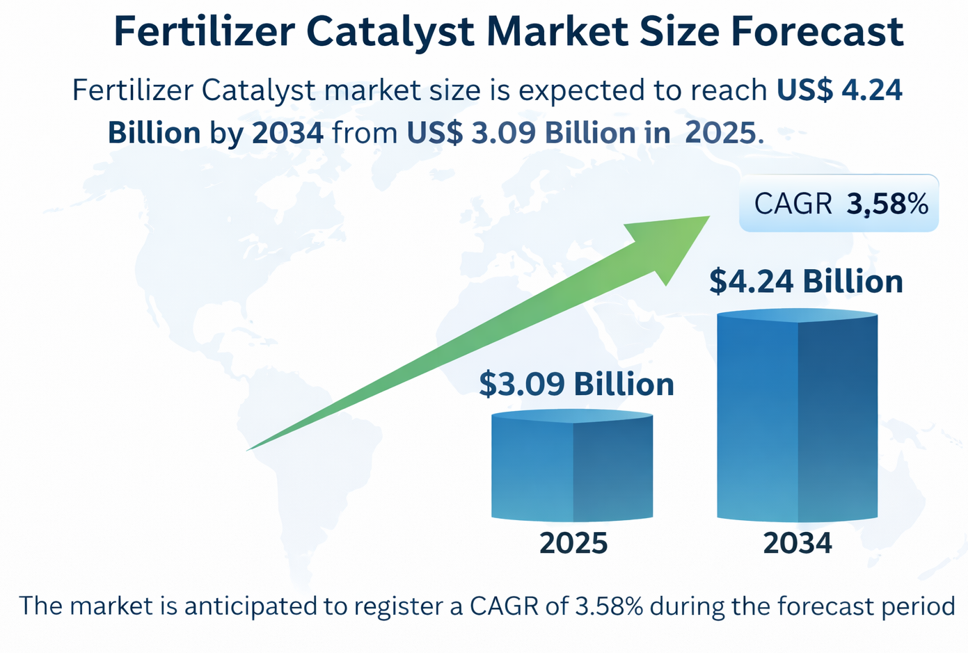 世界の農業情勢は、現在、劇的な変革の渦中にあります。肥料用触媒市場の規模は、2025年の30億9000万米ドルから、2034年には42億4000万米ドルへと拡大すると予測されています。同市場は、予測期間である2026年から2034年にかけて、年平均成長率(CAGR)3.58%を記録すると見込まれており、食料生産システムにかかる圧力はかつてないほど高まっています。この産業的農業シフトの中核を担っているのが「肥料用触媒市場」です。これは化学産業の専門分野の一つであり、アンモニア、尿素、リン酸塩といった必須栄養素の、効率的かつ大規模な生産を支える役割を果たしています。